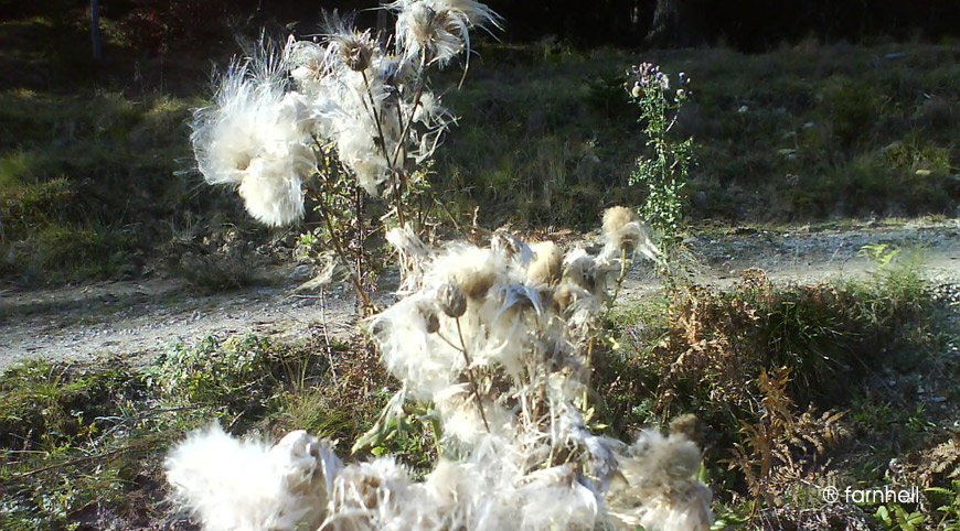 ich bin ein Fan von Märchen, nicht nur, weil die meisten gut enden. Vor allem der Zauber, der in vielen dieser Geschichten steckt, fasziniert mich immer wieder. So eine Verwandlung scheint auch hier geschehen zu sein. Hinten rechts sieht man die Distel, wie Disteln an und für sich aussehen und gleich daneben die "verzauberte" Version. Daran kann ich nicht vorbeigehen. Vorsichtig nehme ich den Apparat, steige einige Schritte herunter vom Weg in die Wiese, das Auge am Sucher und schon hab ich dieses Wunder der Natur eingefangen ...